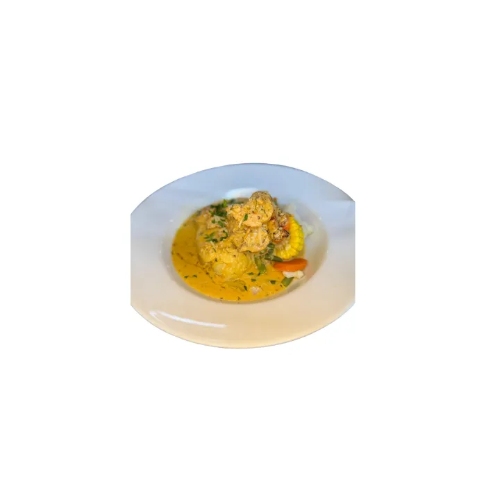 Gently cooked in a luxurious white wine cream sauce, served with fluffy mashed potatoes and fresh, seasonal vegetables.